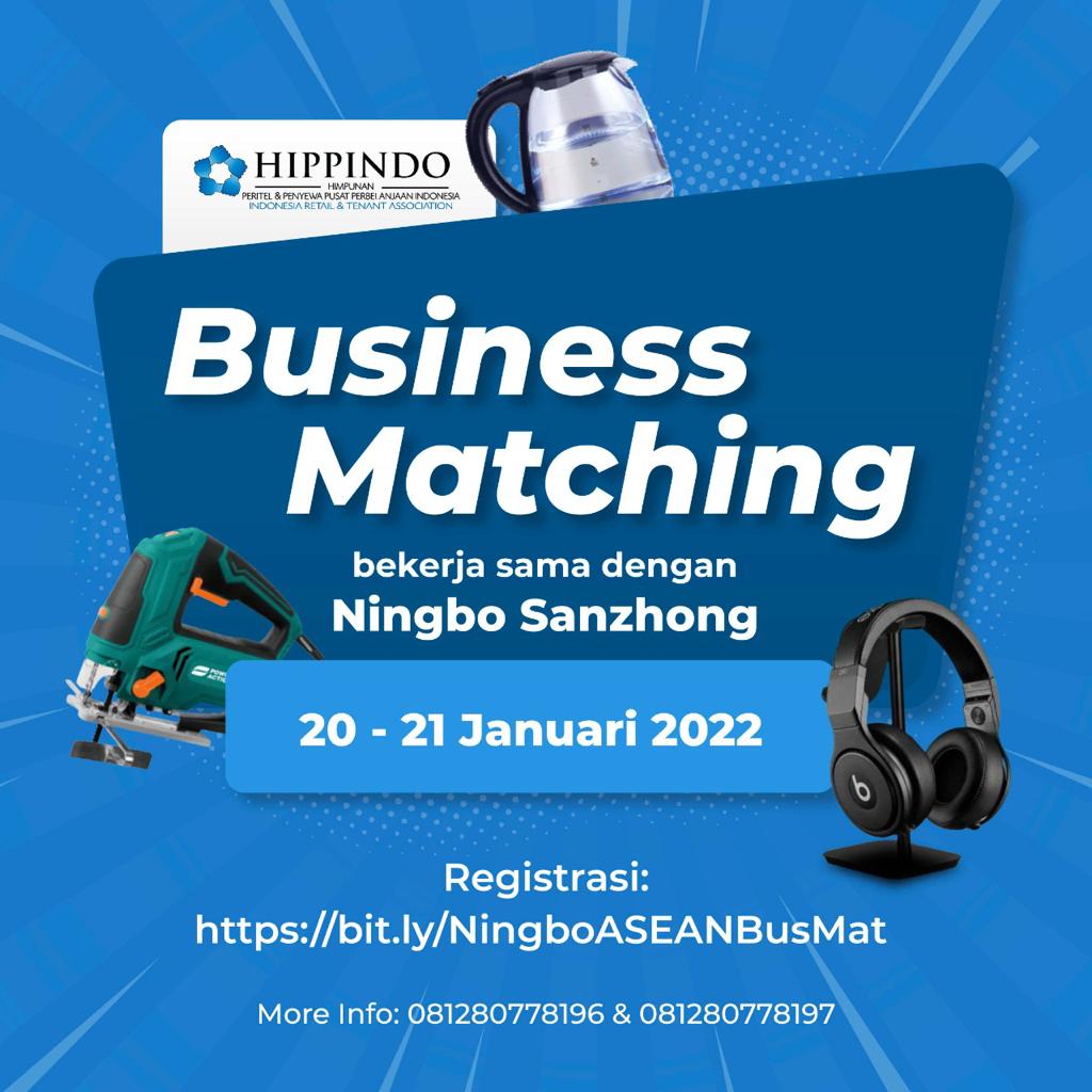 Jangan lewatkan acara Business Matching HIPPINDO bekerja sama dengan Ningbo Sanzhong yang akan dilaksanakan pada hari Kamis – Jumat, 20 – 21 Januari 2022 dengan mengisi registrasi