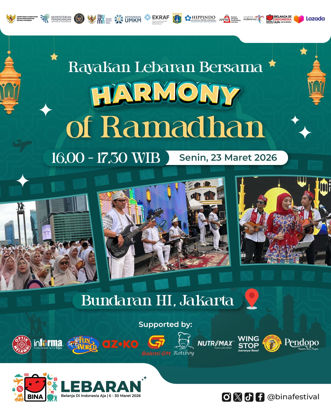 Belanja di Indonesia Aja (BINA) berkolaborasi dengan Pemerintah Provinsi DKI Jakarta menghadirkan acara spesial yang akan memeriahkan suasana Lebaran di jantung kota Jakarta.